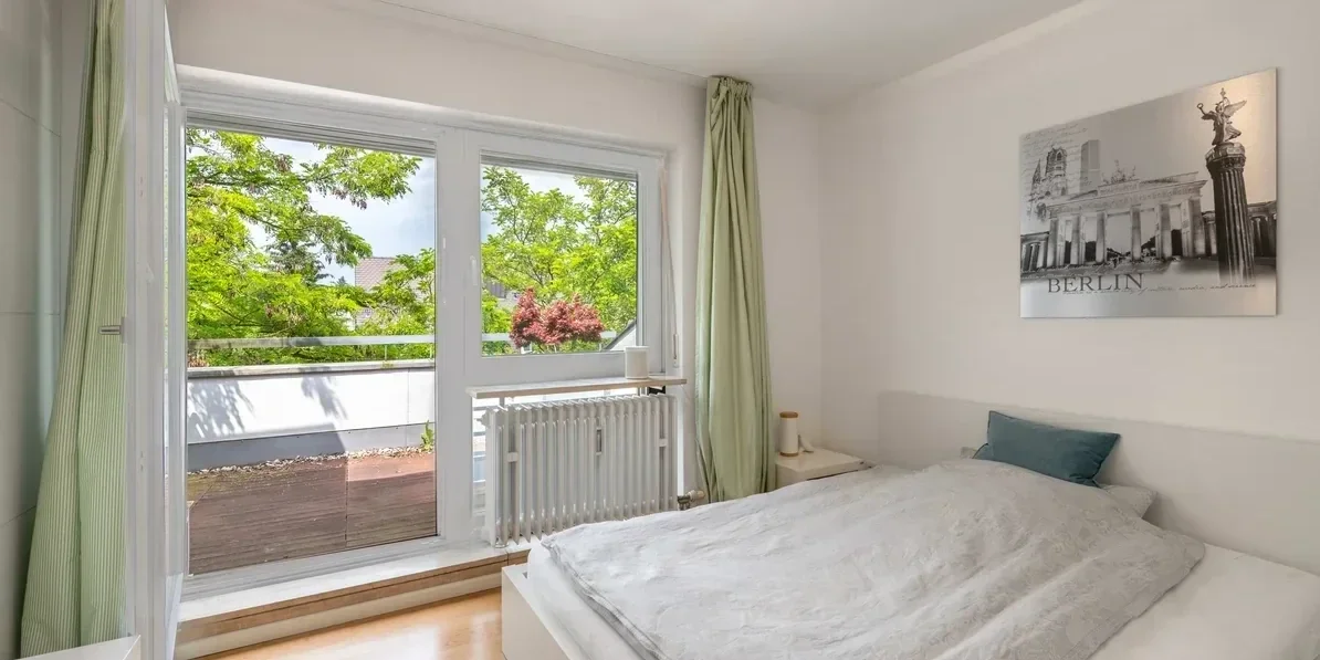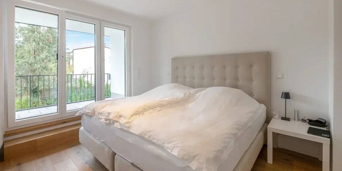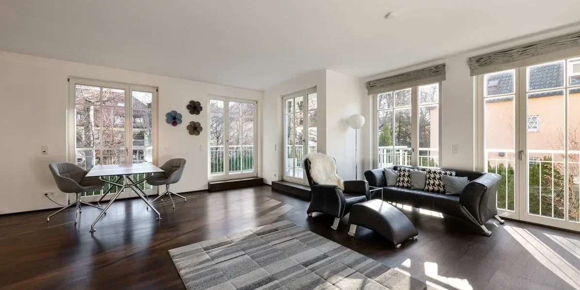 Die Räumlichkeiten erstrecken sich über ca. 108 m² und präsentieren sich im 1. Obergeschoss einer gepflegten Stadtvilla aus dem Baujahr 2004. Neben einem großzügigen Wohn-/Essbereich mit offener Küche umfasst das Raumangebot ein Masterschlafzimmer, einen weiteren attraktiven Raum, zwei Bäder und einen Abstellraum. Ein großer Balkon mit perfekter Südausrichtung und elektrischer Markise erhält nahezu von morgens bis abends Sonne und lädt zum Entspannen und Essen unter freiem Himmel ein.