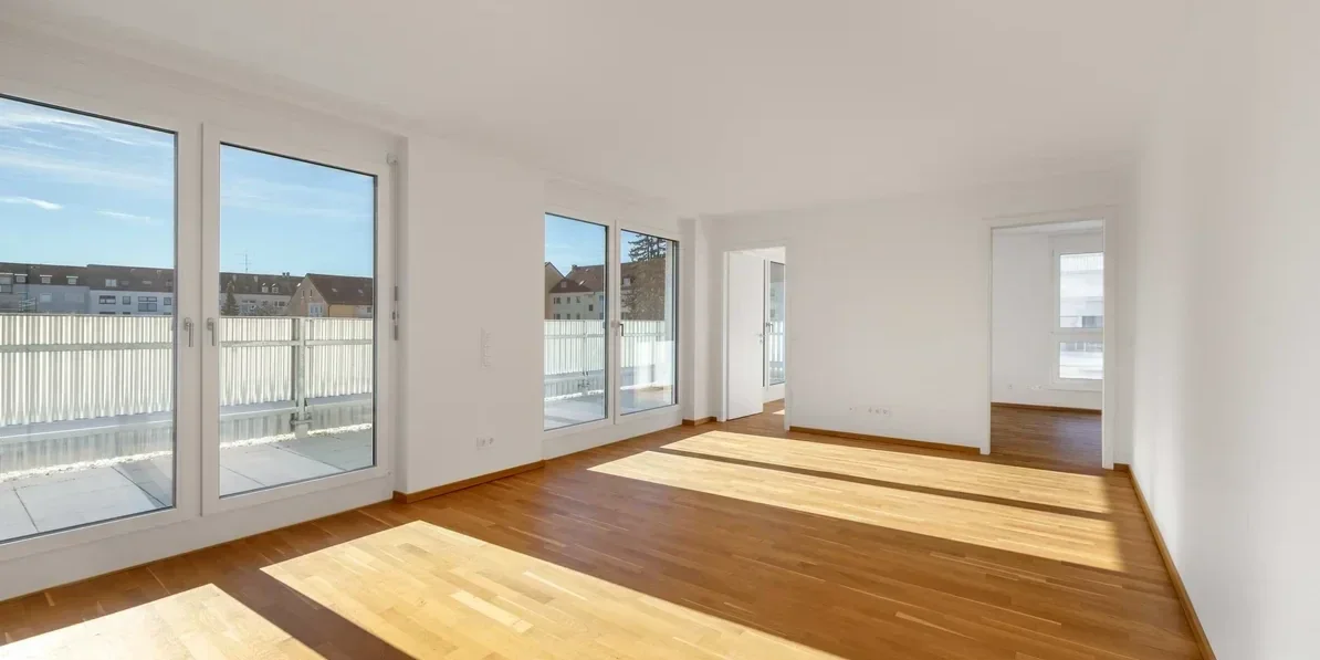 Die Räumlichkeiten verteilen sich auf ca. 74 m² und bestehen aus einem großzügigen Wohn-/Essbereich mit angrenzender Küche, einem Schlafzimmer, einem weiteren Zimmer mit vielseitigen Nutzungsoptionen und einem Bad. Mit einer perfekten Ausrichtung nach Süden zeigt sich das Highlight der Wohnung: eine sonnige Dachterrasse, die sich über die gesamte Breite der Wohnung erstreckt. Im Untergeschoss bietet ein Kellerabteil Stauraumflächen. Komplettiert wird die Immobilie durch einen Duplex-Stellplatz in der hauseigenen Tiefgarage. Bei Bedarf können auch mehrere Stellplätze angemietet werden. Geheizt wird mit einer Wasser-Wasser-Wärmepumpe.