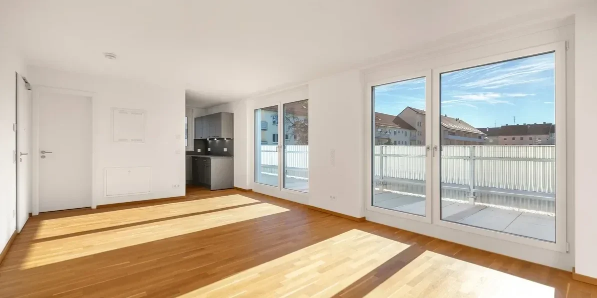 Modern, urban und nachhaltig: Diese attraktive Wohnung befindet sich zentral und geschützt in einem 2025 fertiggestellten Wohnensemble in ruhiger, autofreier Innenhoflage – ein grüner Rückzugsort mit Großstadtflair. Das Objekt umfasst das gesamte 3. Obergeschoss (Dachgeschoss), ein Lift fährt bis ins 2. Obergeschoss.