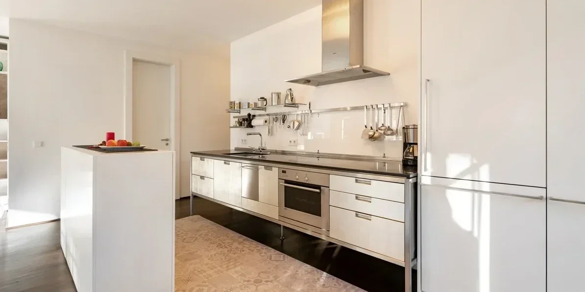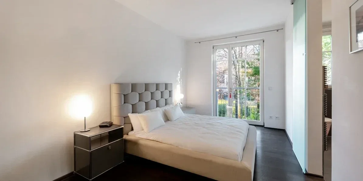 Dunkel geöltes Wenge-Parkett, Fußbodenheizung, eine bulthaup-Einbauküche, ein holzbefeuerter Kamin und geschmackvolle Badgestaltung schaffen ein Domizil mit Wohlfühlambiente. Komplettiert wird diese Wohnung durch ein Kellerabteil und einen Tiefgaragen-Duplex-Stellplatz.